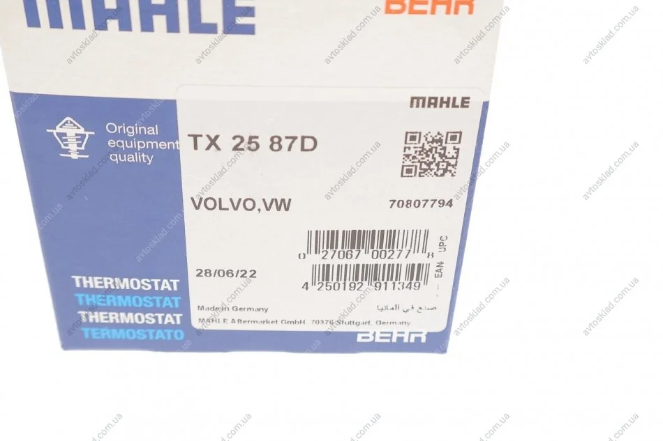 Термостат AUDI; SKODA; Volkswagen; VOLVO (Mahle) MAHLE / KNECHT TX 25 87 D