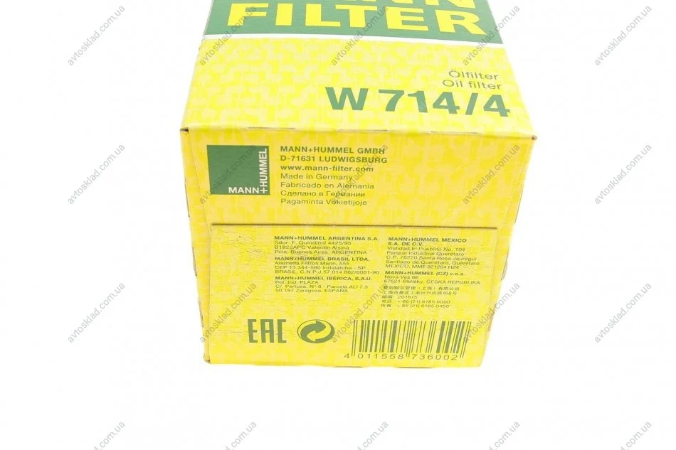 Фильтр масляный двигателя MANN W714/4