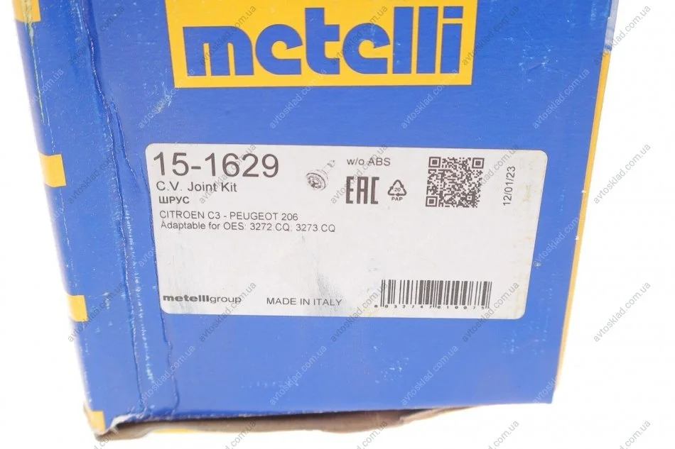 Шарнирный комплект, приводной вал Metelli 15-1629