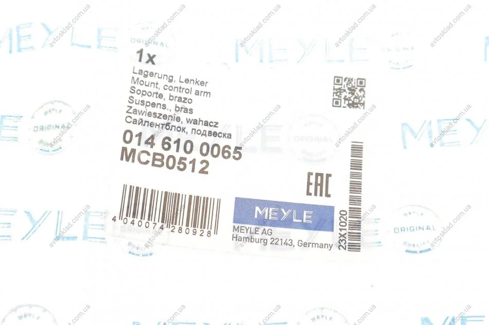 Сайлентблок важеля MEYLE 014 610 0065