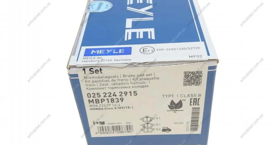 Колодки тормозные MEYLE 025 224 2915