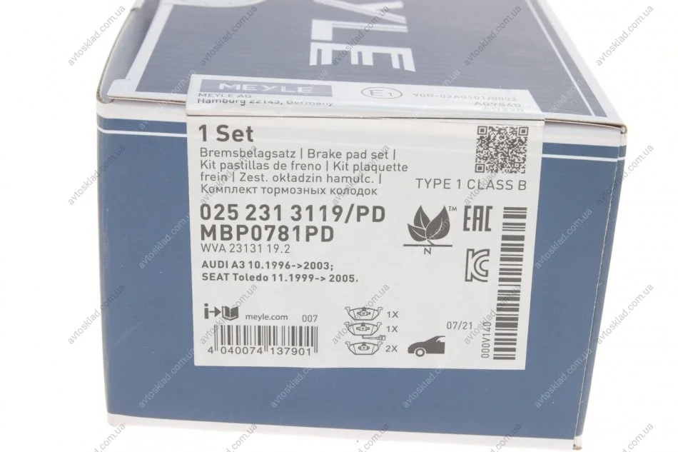 Тормозные колодки к-т MEYLE 0252313119PD