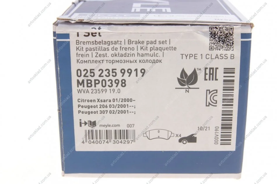 Колодки тормозные MEYLE 025 235 9919