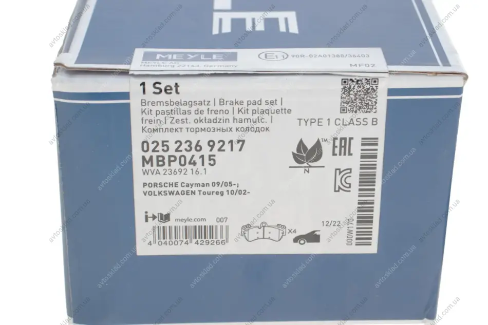 Колодки тормозные MEYLE 025 236 9217