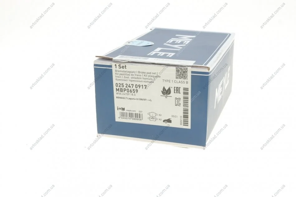 Колодки тормозные MEYLE 025 247 0917