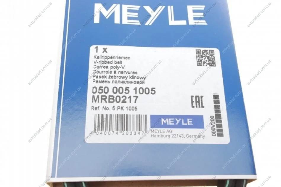 Ремень поликлиновой 5PK1005 MEYLE 050 005 1005