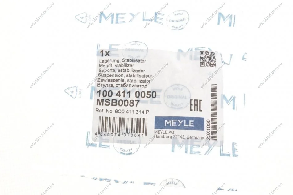 Втулка стабилизатора AUDI A2, SEAT CORDOBA, IBIZA III-IV 99- перед. мост MEYLE 100 411 0050