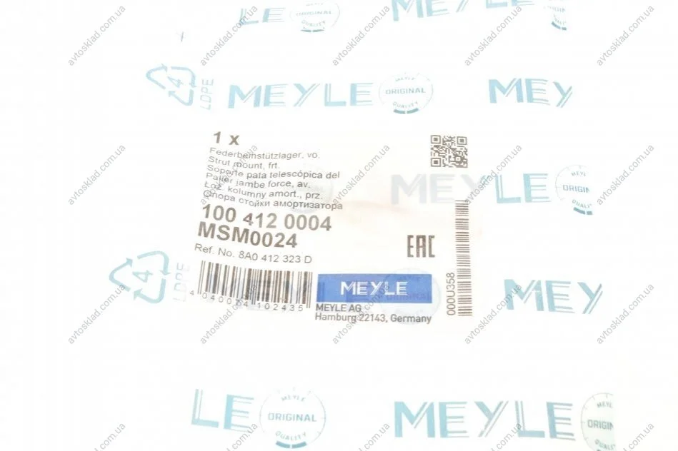 Опора амортизатора MEYLE 100 412 0004