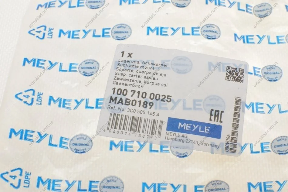 Сайлентблок балки MEYLE 100 710 0025