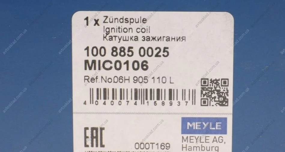 Катушка зажигания MEYLE 100 885 0025