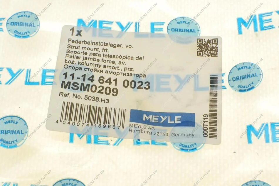 Опора аморт. PEUGEOT передн. MEYLE 11-14 641 0023