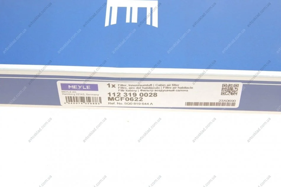 Фильтр воздушный салона MEYLE 112 319 0028