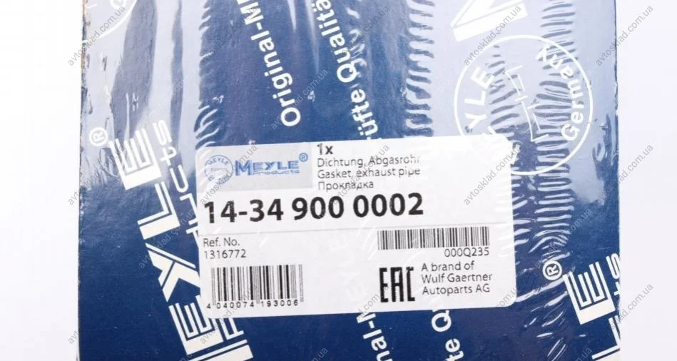 Прокладка, глушитель MEYLE 14349000002