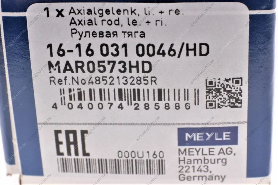 Осевой шарнир, рулевая тяга лев/прав MEYLE 16160310046HD