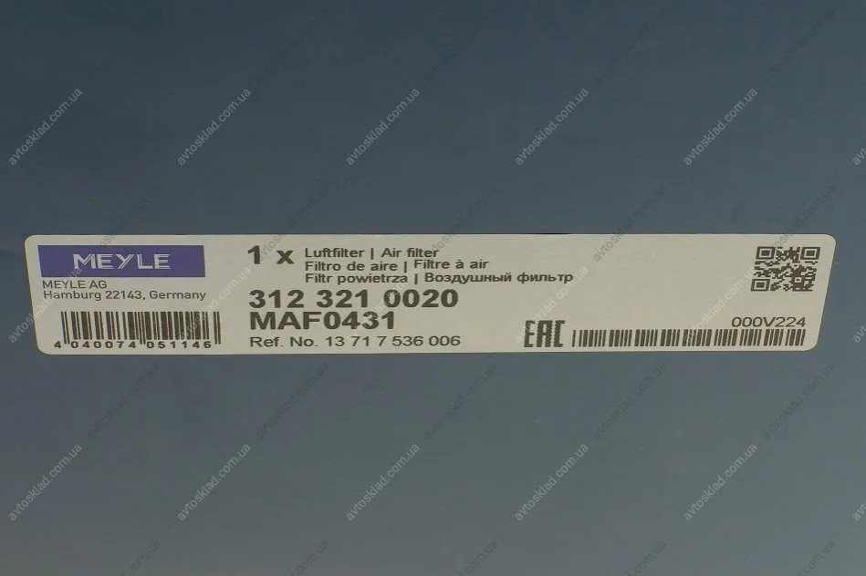 Фильтр воздуха BMW 1/3/X1 E87/E90/E91/E92 2.5i, 3.0i 01/05- MEYLE 312 321 0020