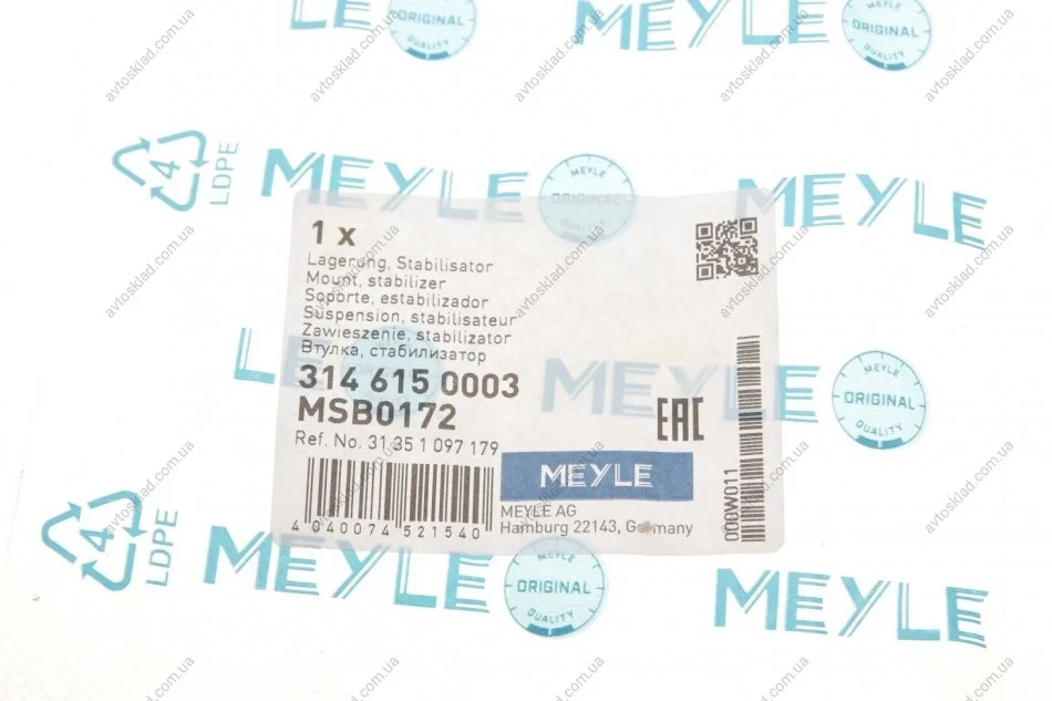 Втулка стабилизатора BMW 3(E46) 98-07 перед. мост MEYLE 314 615 0003
