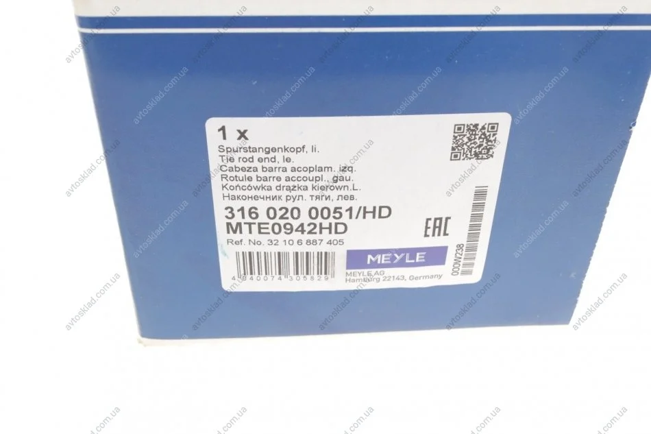 Наконечник рулевой тяги MEYLE 316 020 0051/HD