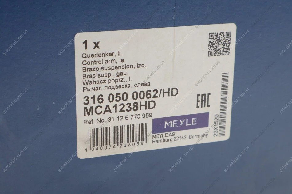 Рычаг подвески HD левый MEYLE 3160500062HD