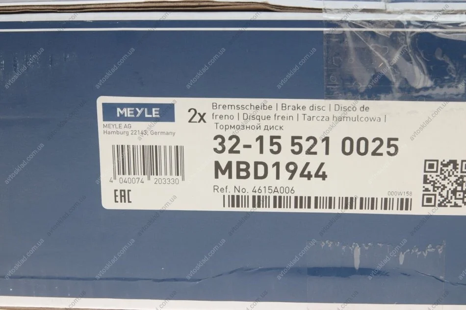 Диск тормозной MEYLE 32-15 521 0025