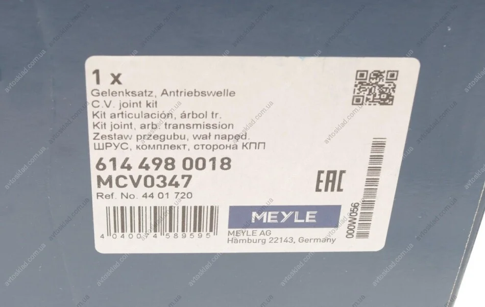 ШРУС наружный с пыльником MEYLE 614 498 0018