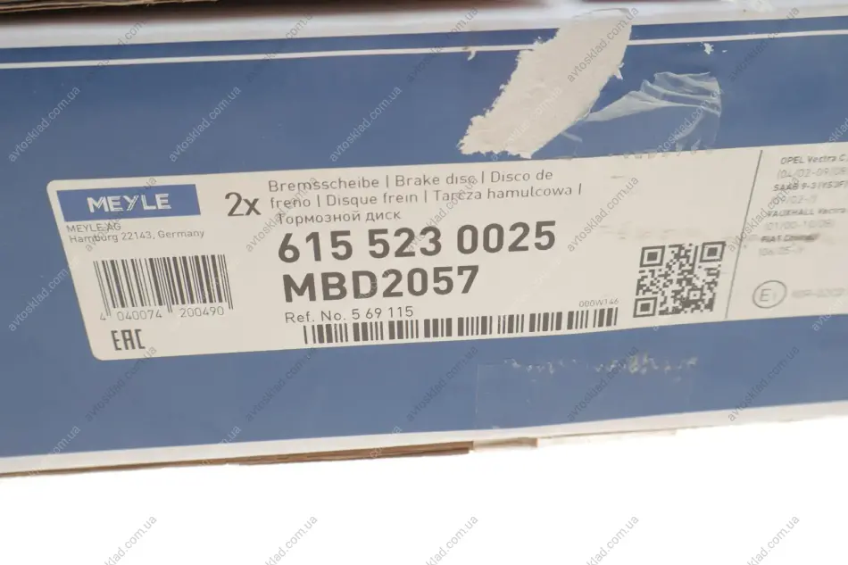 Диск тормозной MEYLE 615 523 0025