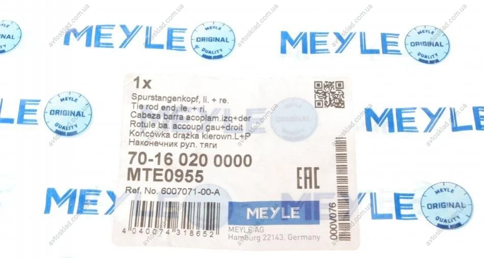 Наконечник рулевой тяги MEYLE 70-16 020 0000