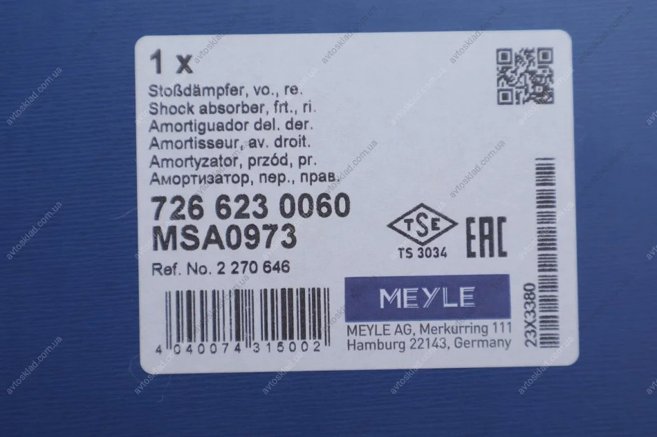 Амортизатор MEYLE 726 623 0060