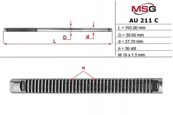 Шток рулевой рейки с ГУР AUDI A4 95-01, SKODA SUPER B 02-, VW PASSAT 96-05 MSG AU211C