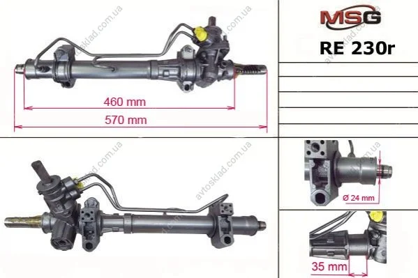 Рулевая рейка с ГУР восстановленная DACIA SOLENZA 03-;NISSAN KUBISTAR (X76) 03-,KUBISTAR 03- MSG RE230R