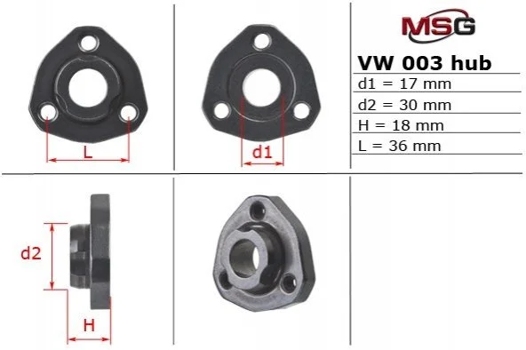 Ступица насоса ГУ SKODA OCTAVIA 97-03,VW CADDY 96-00,VW CRAFTER 06-,VW GOLF 93-08 MSG VW003HUB
