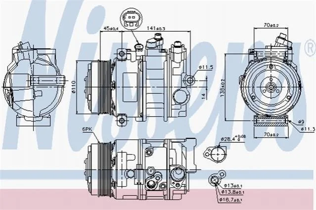 Компрессор кондиционера MERCEDES C, E, SLK-CLASS, SPRINTER W 906 NISSENS 89039