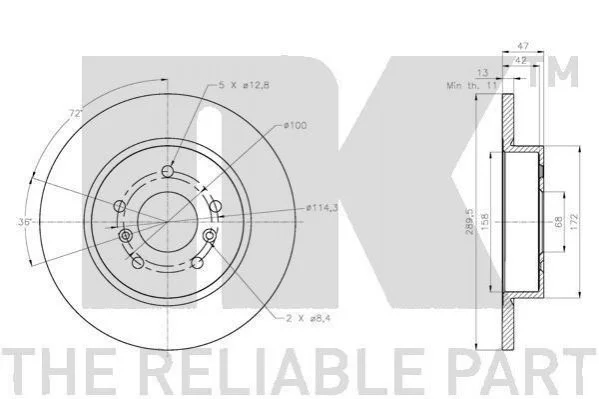 Диск тормозной зад. NISSAN QASHQAI 13- RENAULT KADJAR 15- 290X13 NK 202291