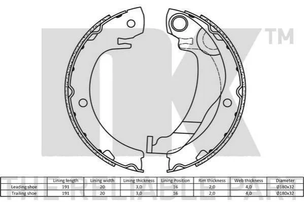 Комплект тормозных колодок, стояночная тормозная система NK 2745786