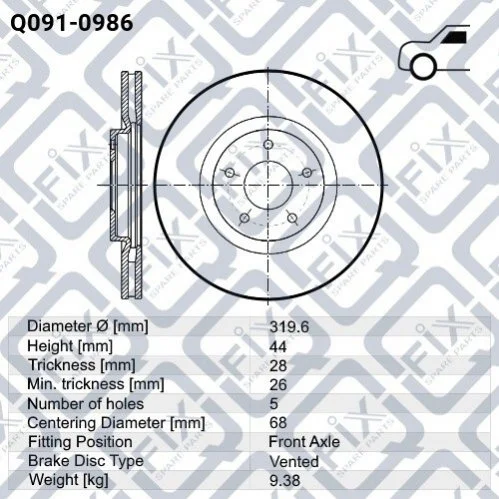 ДИСК ТОРМОЗНОЙ ПЕРЕДНИЙ Q-FIX Q0910986