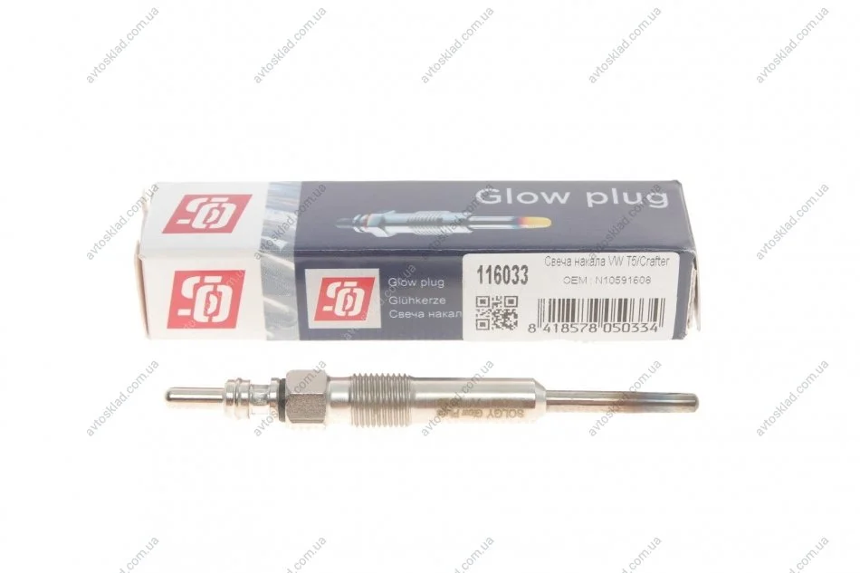 Свеча накала VW T5/Crafter 7V M10x1mm Solgy 116033