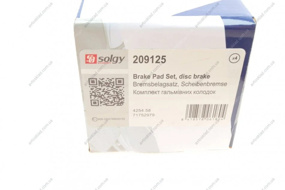 Колодки тормозные Solgy 209125