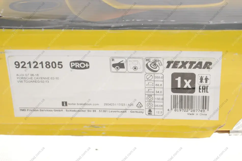 Диск тормозной TEXTAR 92121805