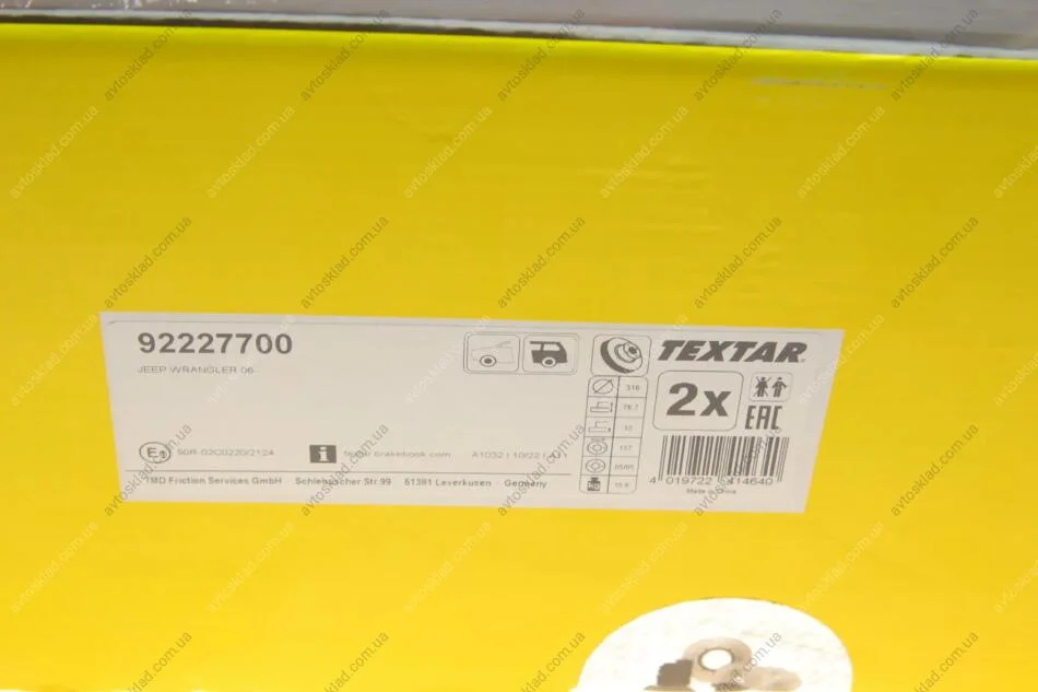 Тормозной диск TEXTAR 92227700