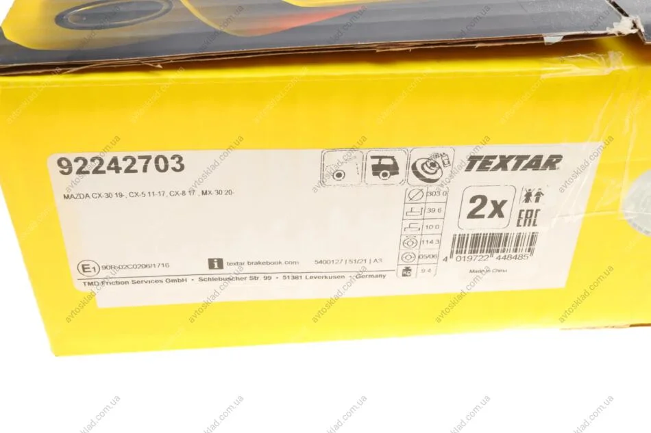 Тормозной диск TEXTAR 92242703