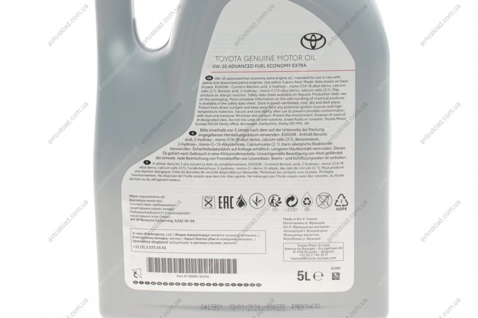 Масло моторное 0W20 5L TOYOTA 08880-86294