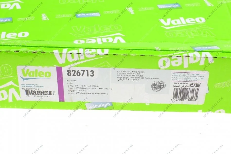 Сцепление FORD FOCUS, C-MAX 1.6TDCI 03- Valeo 826713