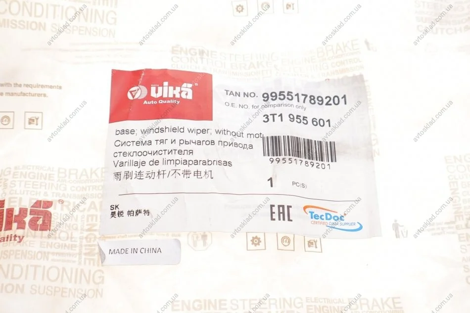 Трапеция стеклоочистителя переднего без электромотора Skoda Superb (08-15) (9955 VIKA 99551789201