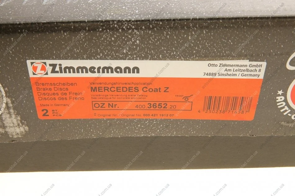 Тормозной диск ZIMMERMANN 400365220