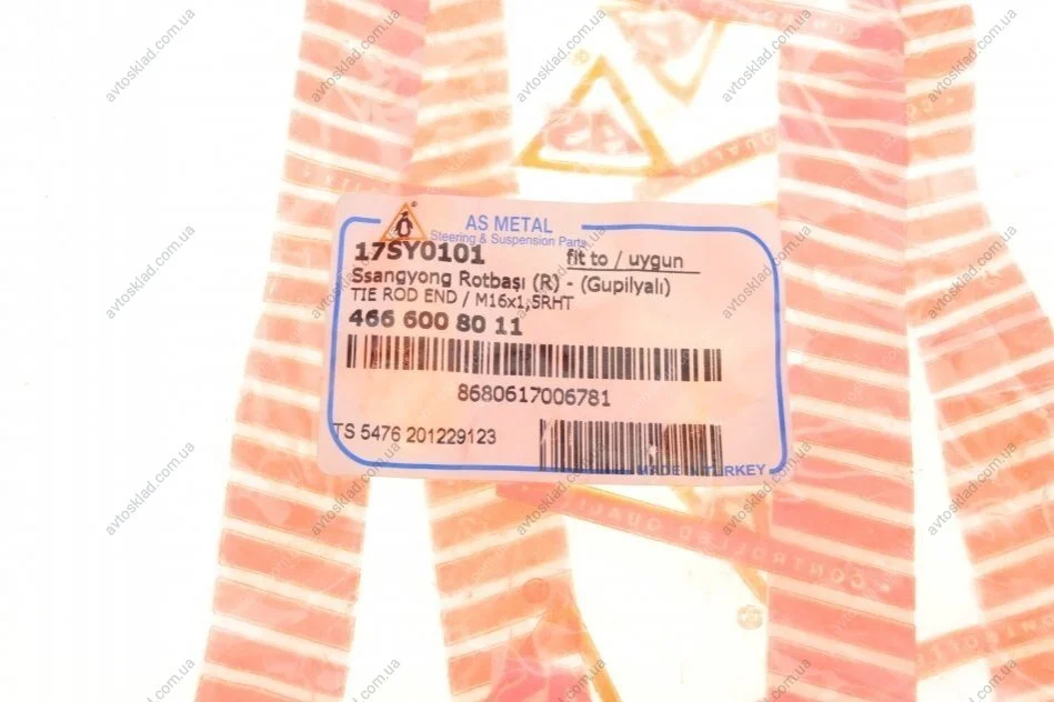Наконечник рульової тяги Ssangyong Actyon/Kyron 05-/Rexton 05- Пр. ASMETAL 17SY0101