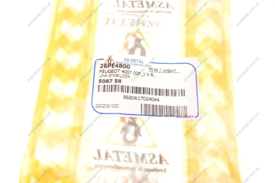 Тяга стабілізатора перед. Peugeot 4007/408/Mitsubishi Lancer 07-/Outlander 06- ASMETAL 26PE4800