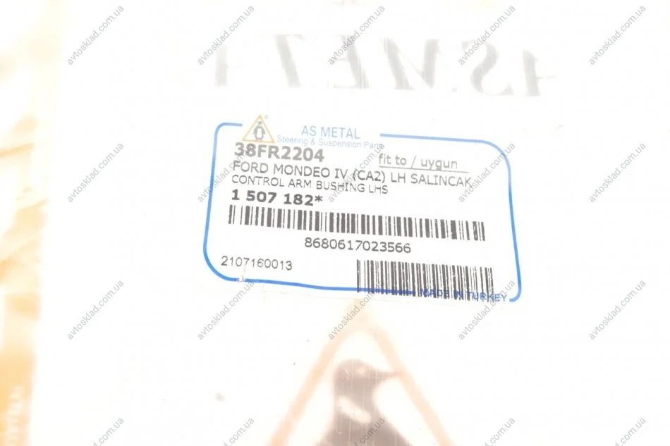 Сайлентблок перед. важеля Ford Mondeo IV/S-Max/Volvo S60/S80/XC60/XC70 06- (ззаду) Л. ASMETAL 38FR2204