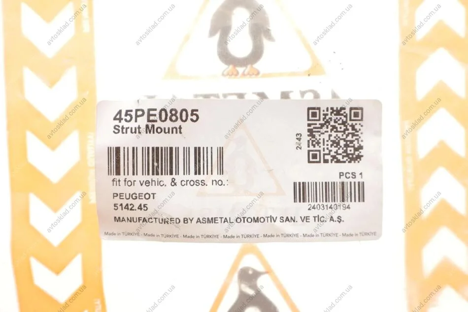 Опора амортизатора заднього Peugeot 307 00- ASMETAL 45PE0805