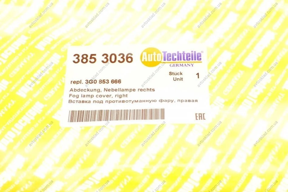 Вставка під протитуманну фару, права VW Passat 14-> AUTOTECHTEILE 385 3036