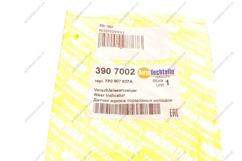 Датчик зносу гальмівних колодок передній VW Touareg 10-18/ Porshe Cayenne 10-/Panamera 12-16/(L=296mm) AUTOTECHTEILE 390 7002