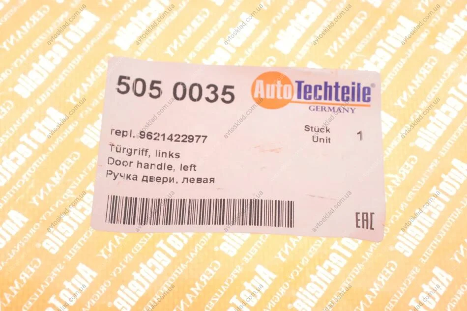 Ручка двері передньої ліва, (внутрішня, чорна) CITROEN Berlingo; PEUGEOT Partner 96-15 AUTOTECHTEILE 505 0035